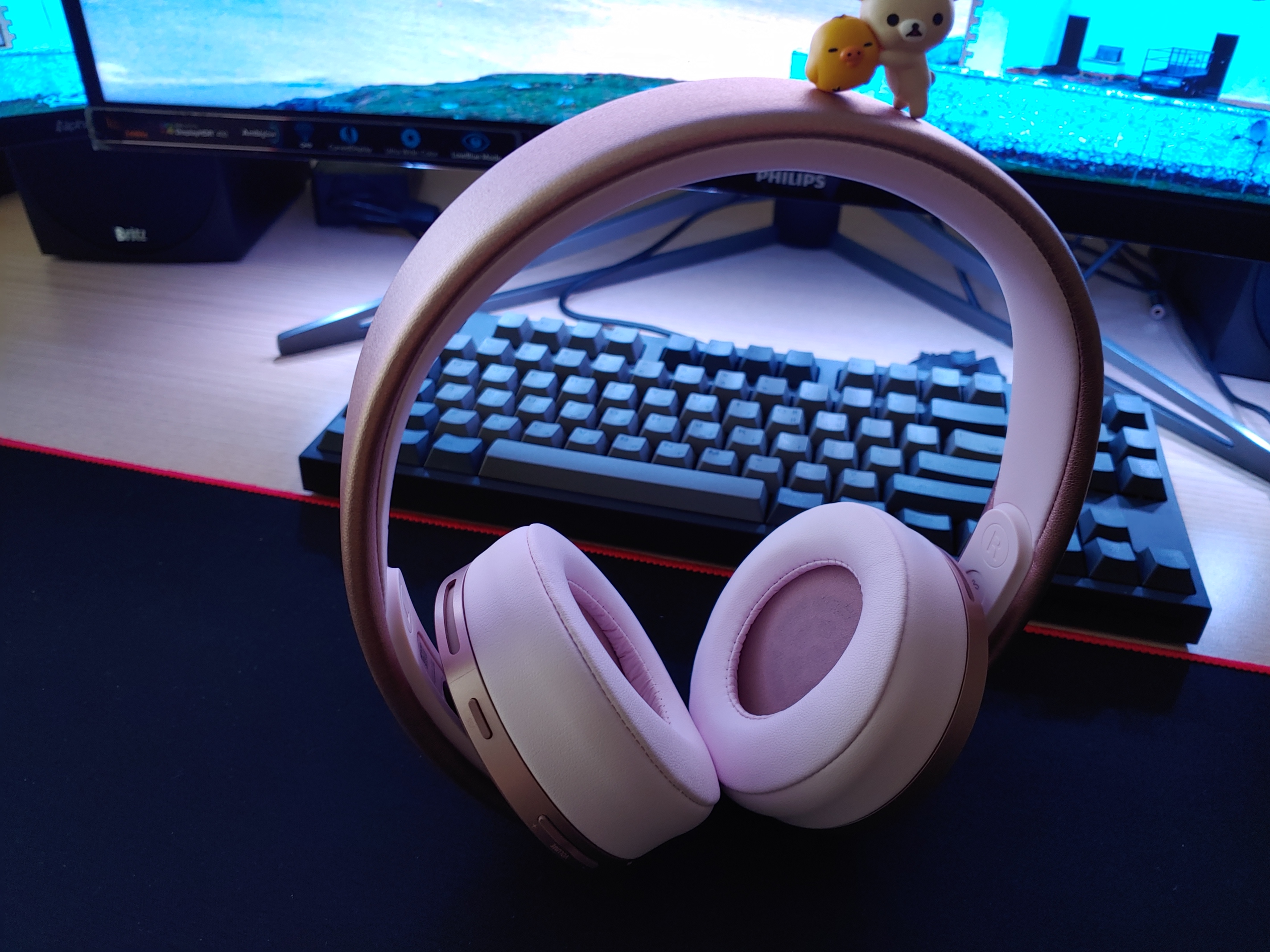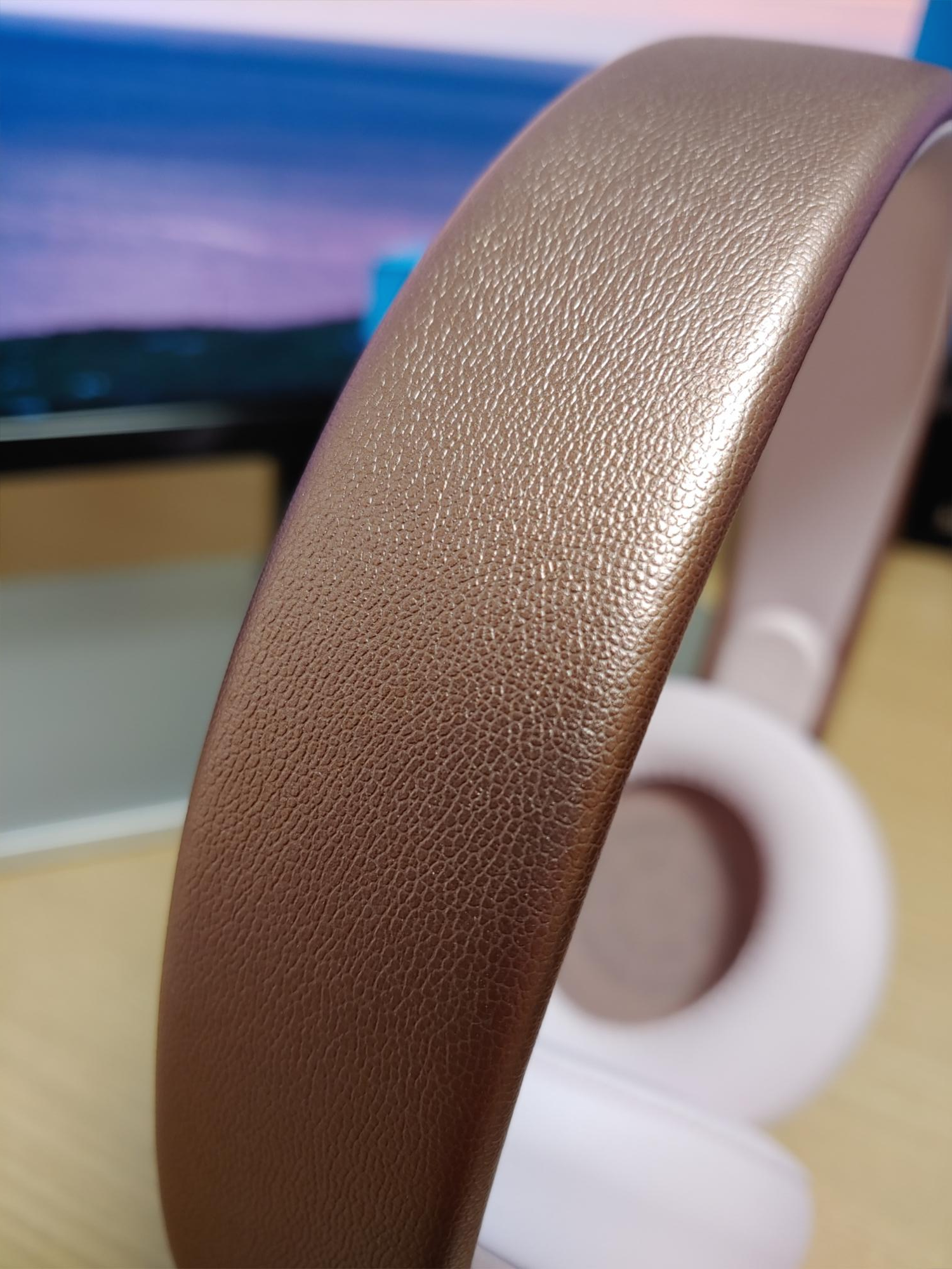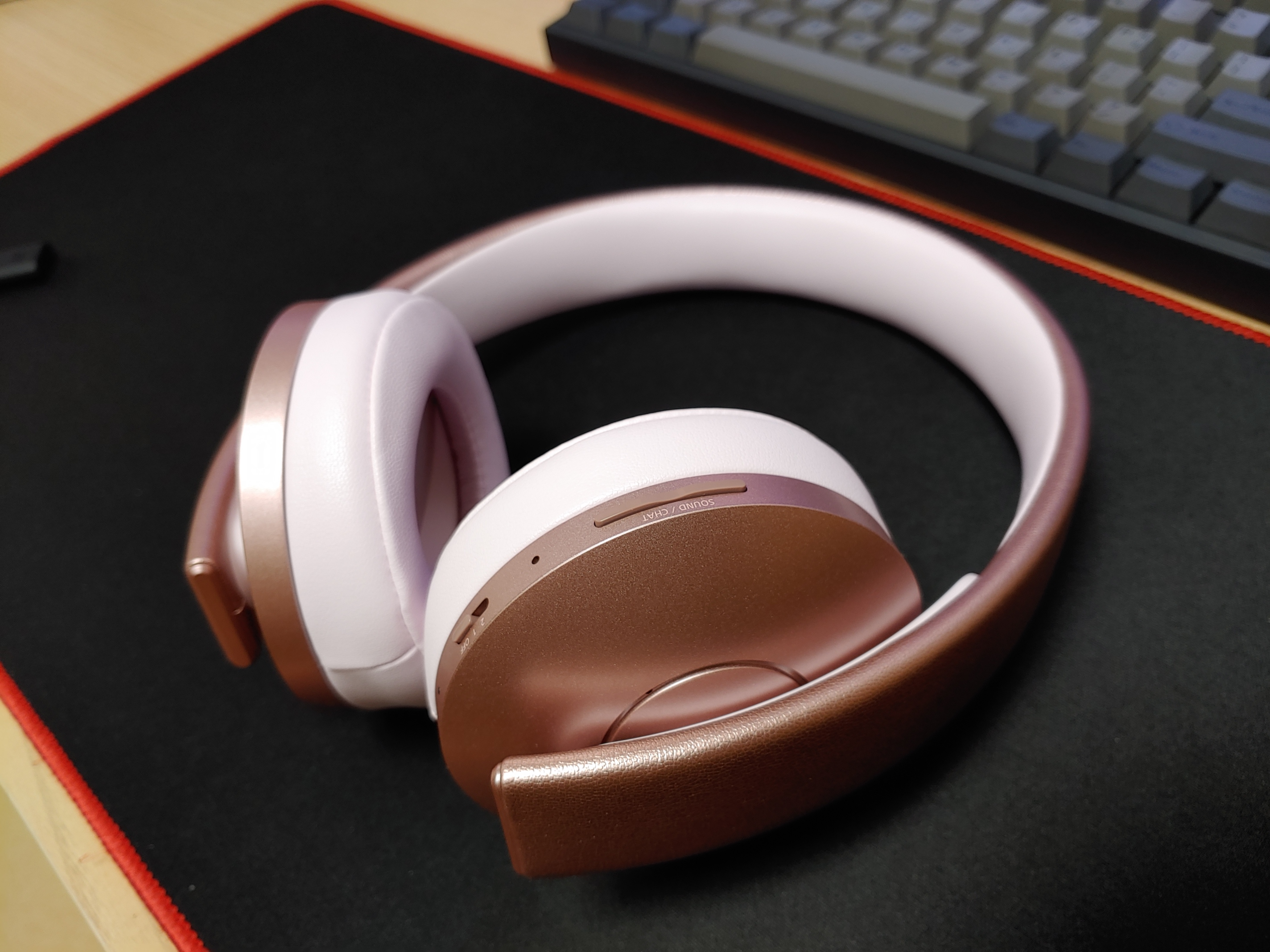 헤드셋의 바깥부분의 색은 분홍색에서 세피아색을 살짝 섞은 느낌이며