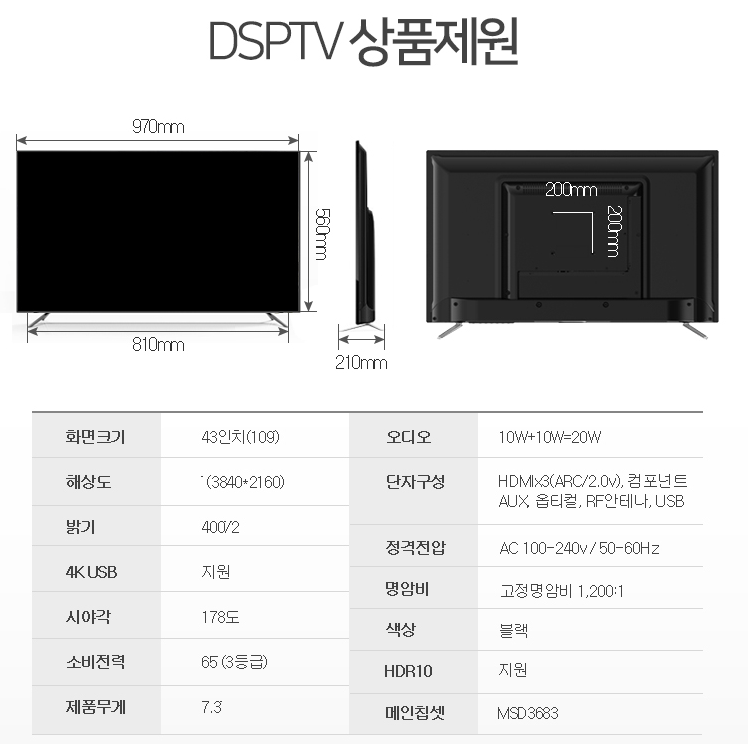 오늘은 DSPTV의 43인치 UHD(4k) TV인 K430UHD 리뷰를 진행하겠습니다. 바로 가시죠!