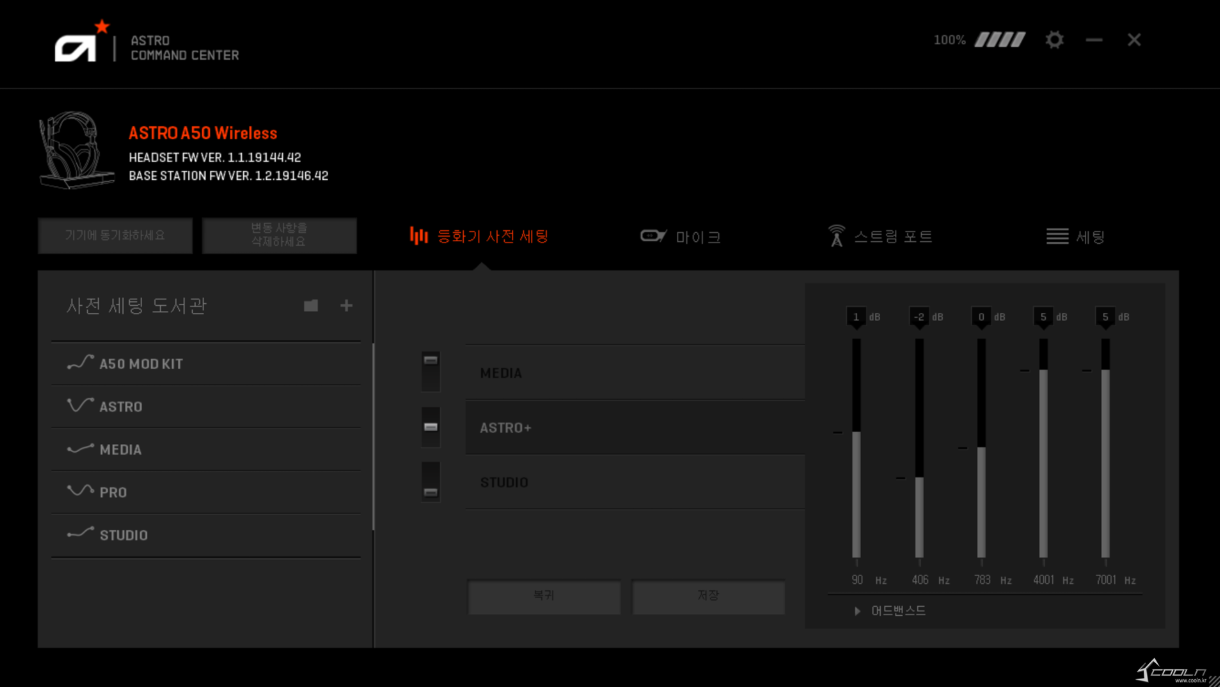 게다가 인터넷에서 "astro a50 eq"라고 구글에서 검색하면, 많은 유저들이 다양한 eq세팅을 만들어 공유해놓은 자료들이 있습니다. 마음에 드는 것들을 골라 다운받으시고 테스트 후 저장해놓으면 더 즐거운 게임을 즐길 수 있을 겁니다.