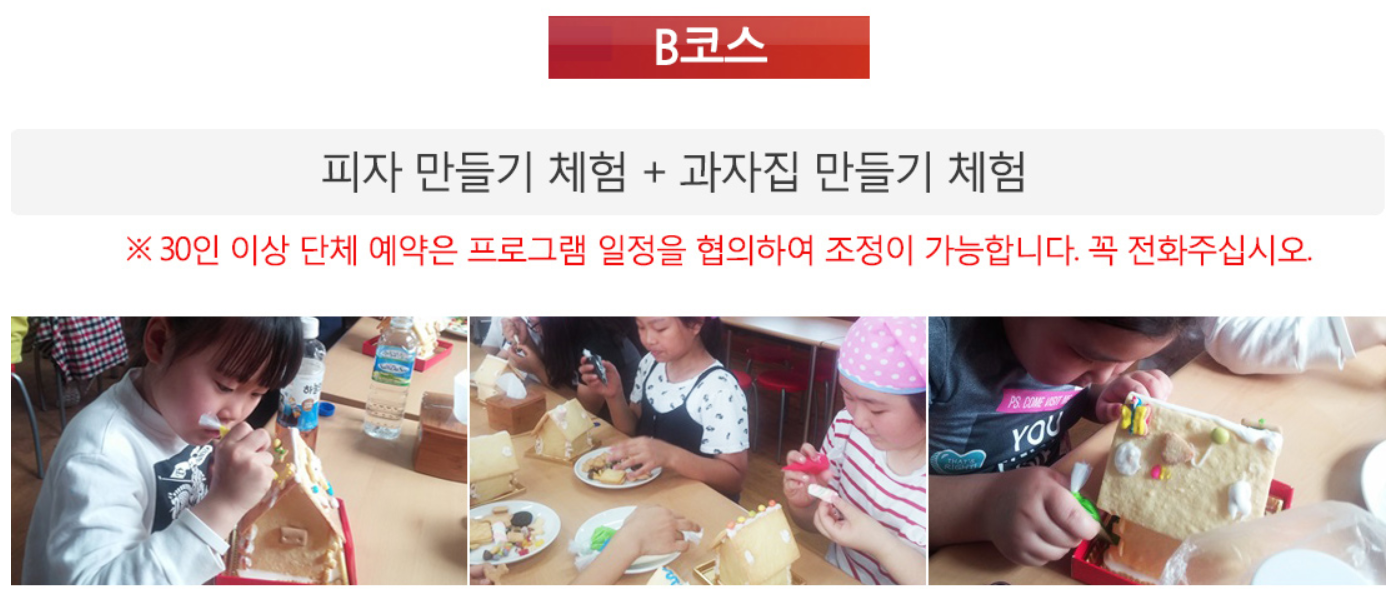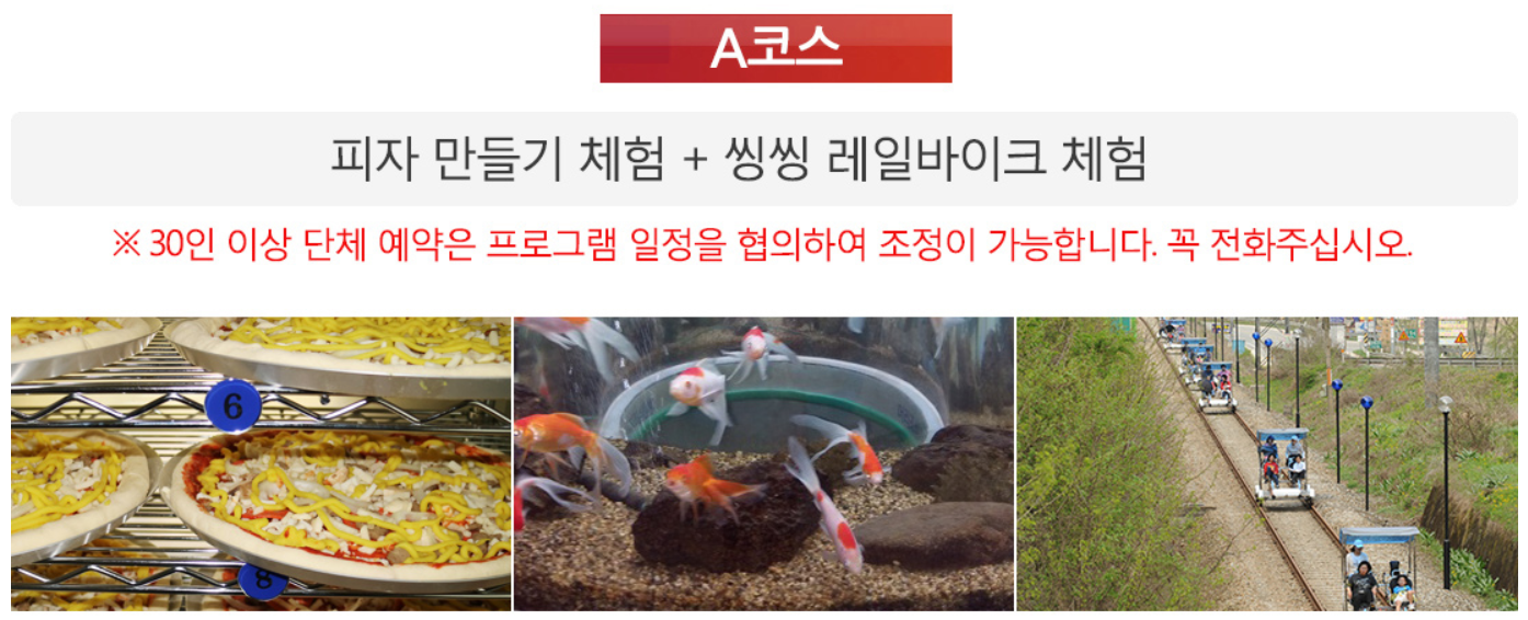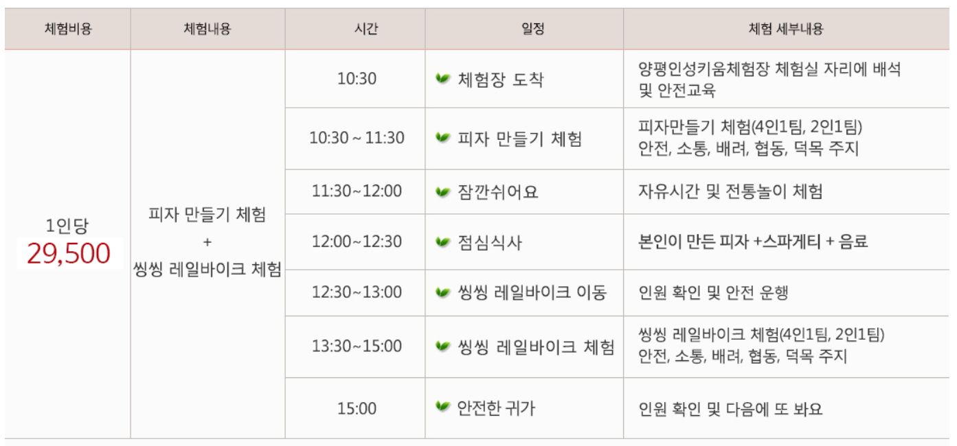 이곳에는 피자만들기, 레일바이크, 생태학습관람, 냅킨아트만들기, 곤충표본만들기 등 굉장히 다양한 프로그램이 운영되고 있어요! 몇가지 프로그램에 대한 소개를 아래에서 확인해보세요.